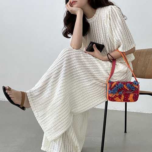 [셀럽하우스]롱원피스 FQHA6372 원피스 지지미 엠보싱 ST220624 스커트 치마