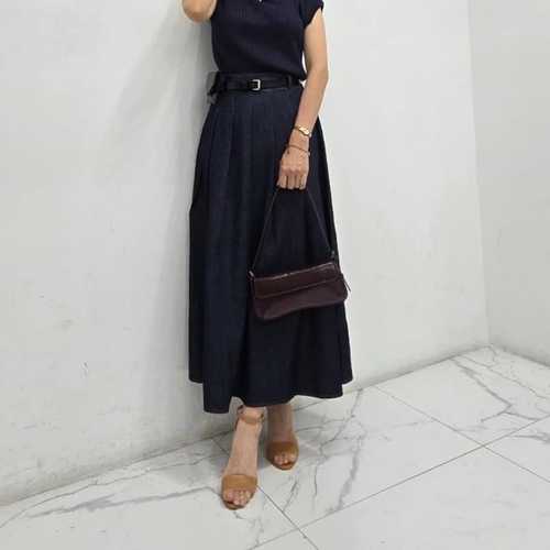 [신상오픈런]여성 핀턱 롱 데님 스커트 뒷밴딩 옆지퍼 디자인