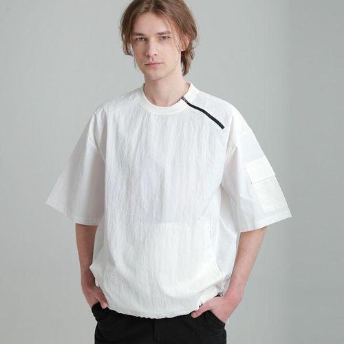 [에이치플러스몰]어깨지퍼 펀칭 반팔티