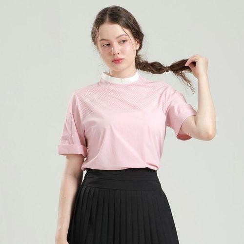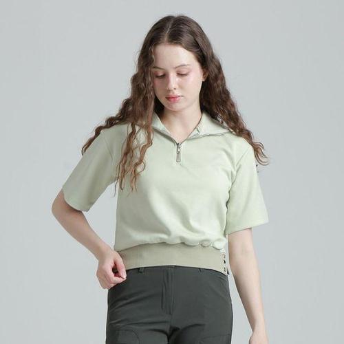 [보니스팍스(여성의류)]사선 지퍼 배색 반팔 티셔츠 (XP4TS024M0)