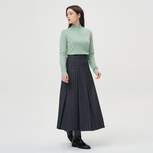 [라온](LAON) 모던 사이드 지퍼 와이드 플리츠 롱스커트 2color