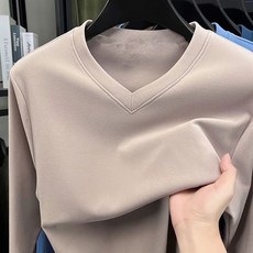 레이어드 남자 티셔츠 V넥 긴팔 티 이너 기모 무지