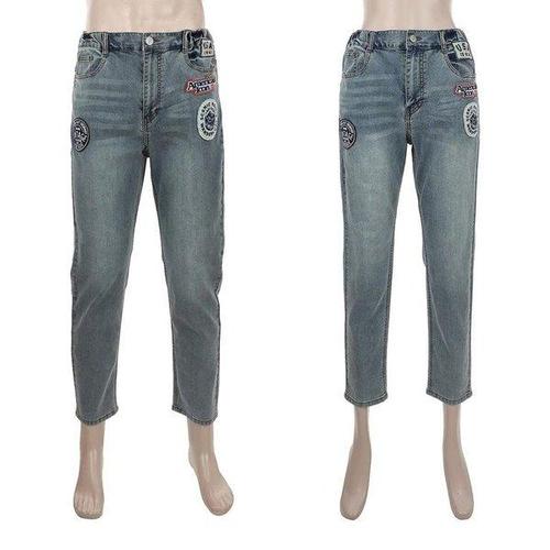 Jeep 스터드 와펜 배기 청바지 남녀공용 데님 팬츠