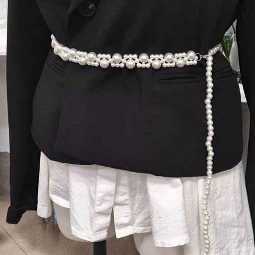 진주벨트 벨트 스판 밴딩 여성용 허리띠 장식 (3odeH)
