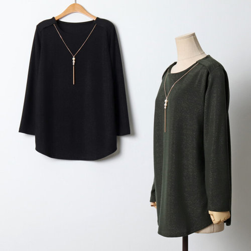 나야홍 / 빅사이즈 511 진주목걸이긴팔티셔츠 DOLJ424