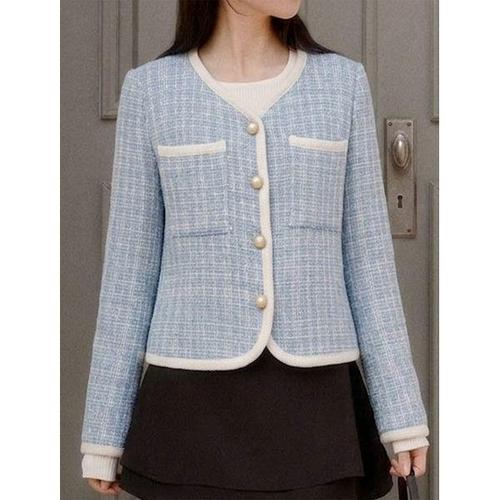 [위시드]배색 라인 진주 버튼 트위드 자켓 (WIDAJK005)