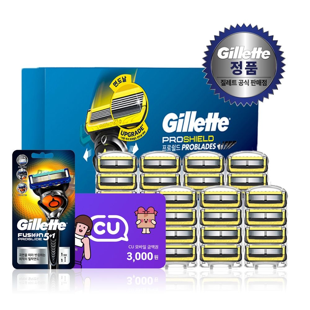 2024 프로쉴드 옐로우 면도날 메가팩(총28입)+플렉스볼 면도기+CU상품권 3천원 증정