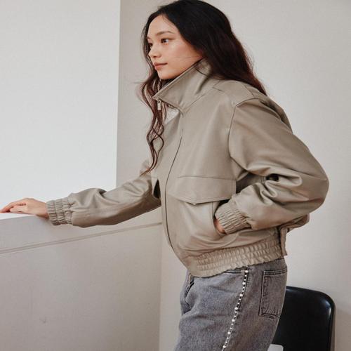 질스튜어트뉴욕 26SS 베이지 포켓 양가죽 점퍼 JSJU6B420I2