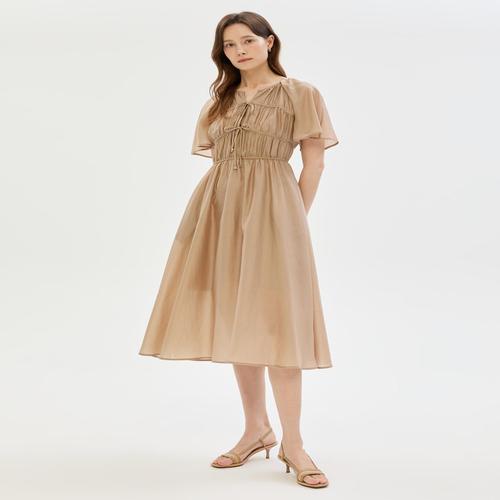 질스튜어트 뉴욕 여성 베이지 셔링장식 반팔원피스 (WJDR5B530I2)
