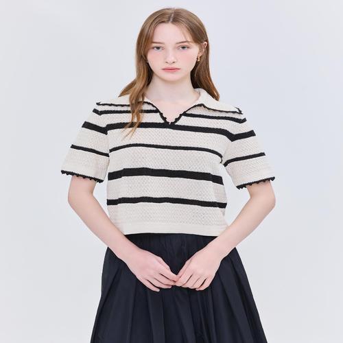 질스튜어트 뉴욕 여성 아이보리 스트라이프 린넨혼방 반팔니트 (WJSW5B834IV)