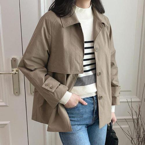 [옷자락] 여성 클래식 면 나일론 날개 사파리 짧은 트렌치 코트