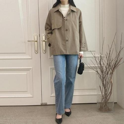 [다잇템]여성 베이직 면원단 짧은 바스락 트렌치코트