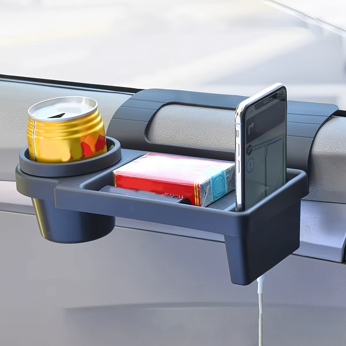 TEMU 차량용 도어 사이드 오거나이저 - 컵 홀더, 휴대폰 홀더 및 다중 수납공간 포함 - 헤비듀티 블랙 대시보드 트레이 (SUV, 세단, 트럭용) - 공간 절약형 도어/벽 부착 액세서리 (드릴링 필요 없음)