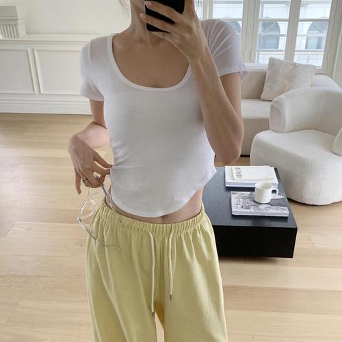 [셀러허브_여성트랜드패션]모달 이너 소매5부 찰랑 반목 얇은 반팔티 여름 스판
