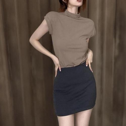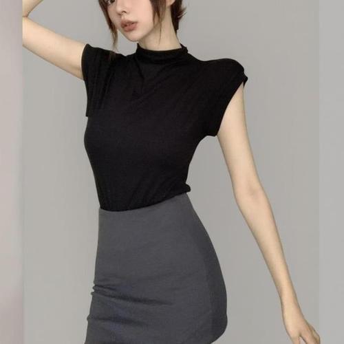 [셀러허브_여성트랜드패션]소매5부 스판 반목 반팔티 여름 이너 모달 얇은 찰랑