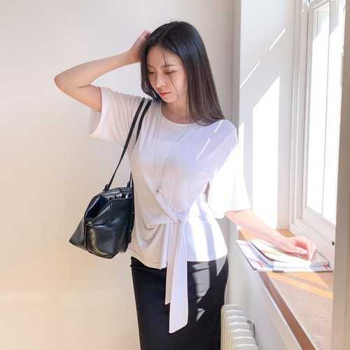 옷자락 / 여자 데일리 오피스룩 찰랑 꼬임 리본 포인트 반팔 티