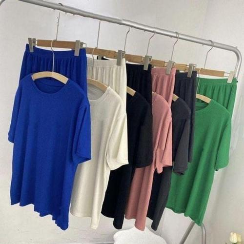[옷자락] 여성 사선 트임 찰랑 반팔티 와이드 팬츠 상하의 세트