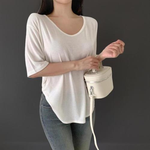 [셀러허브_여성트랜드패션]반팔티 얇은 모달 이너 여름 찰랑 스판 반목 소매5부