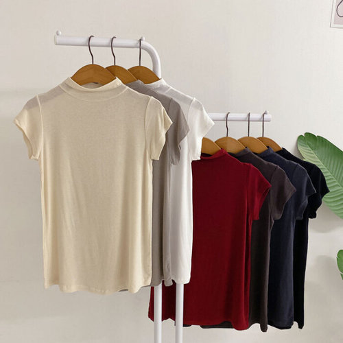 허니제이 / 슈티그 찰랑 하프넥 캡소매 반팔 티셔츠(7color)