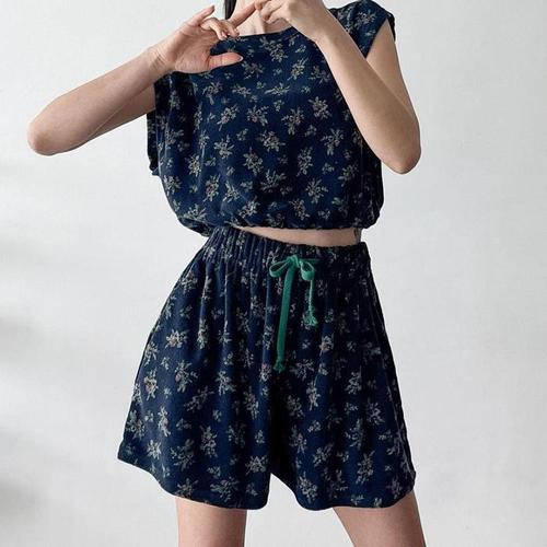 [신상오픈런]꽃반바지 투피스 허리끈 드롭숄더 찰랑 크롭반팔티 테리 (32003955)