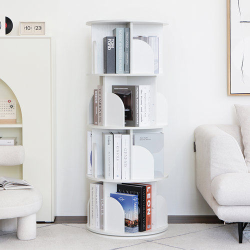 이지라이프 조립식 360도 화이트 회전 원형 책장 화이트 4단