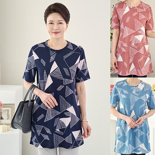 [엄마옷 로즈맘] 하진패턴롱티셔츠/엄마티셔츠 할머니티셔츠 중년여성의류 5060 50대티셔츠
