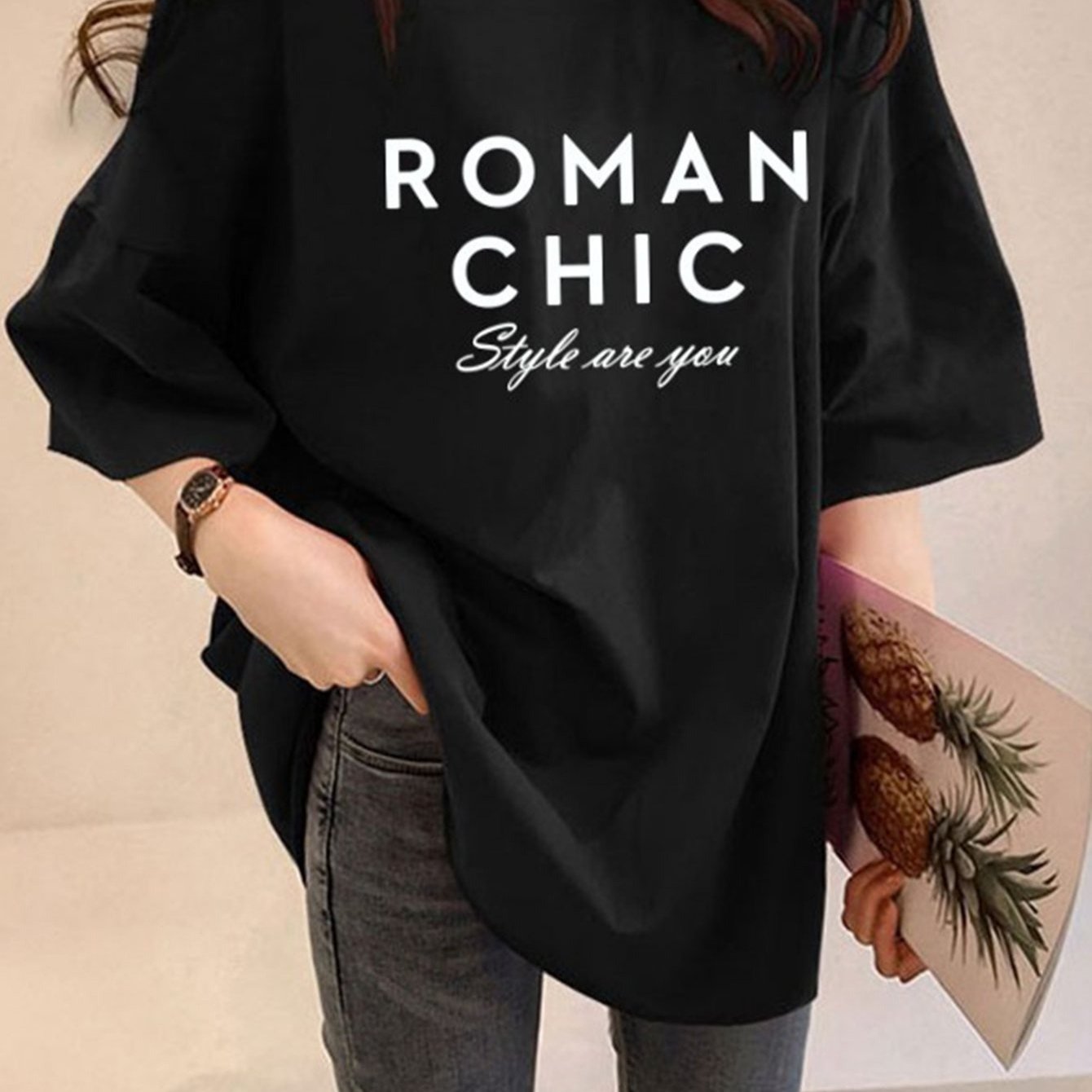 TEMU 스타일아유 여성용 오버핏 레터링 반팔 티셔츠|롱 박시핏|빅사이즈 자체생산|부드러운 데일리 티 TS352A