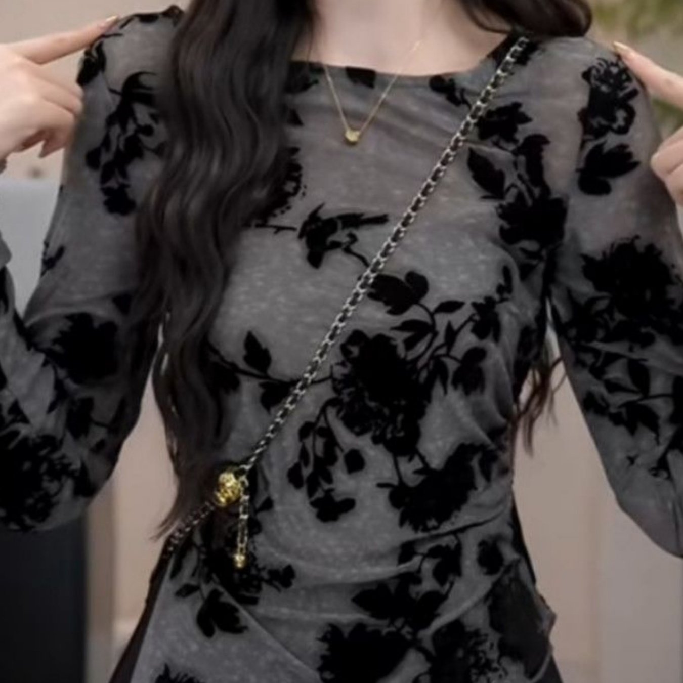 TEMU 세련된 프린트 롱슬리브 메쉬 탑, 가을용 허리 티셔츠
