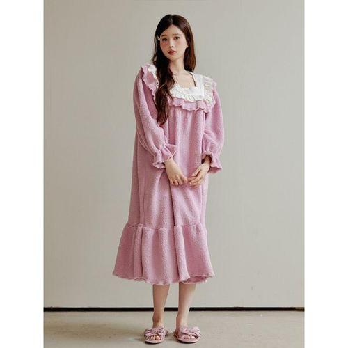 [쿠비카]샤방샤방 스퀘어넥 양털 원피스 여성잠옷 W296