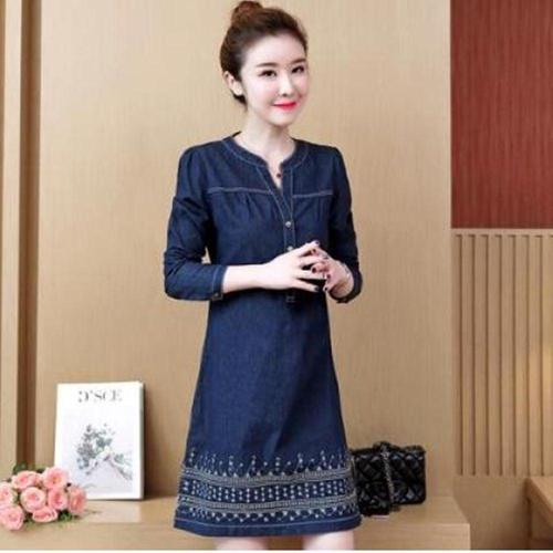 F61121 밑단자수 V넥 긴팔 청원피스 데님원피스 WFL8DLI