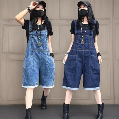 [신상오픈런]여성 캐주얼 면혼합 롤업 멜빵 청 반바지 점프수트 (39070253)