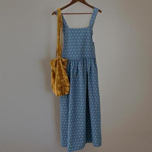 [신상오픈런]여성 청멜빵 백리스 도트 패턴 빅사이즈 면 롱드레스 (41032807)