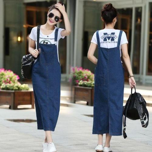 [에이치플러스몰]진청 진 롱핏멜빵치마 데일리룩