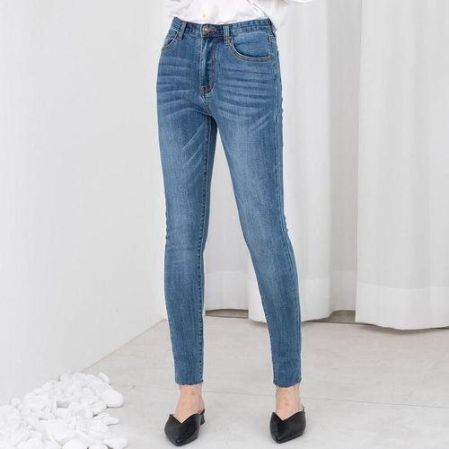 [에이치플러스몰]하이웨스트 연청바지 데일리룩 꾸안꾸룩 스키니진