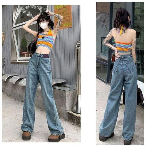 [에이치플러스몰]스타일리시 하이웨스트 청바지 와이드 루즈핏