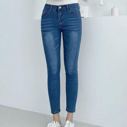 [에이치플러스몰]여자하의 청바지 여자하이웨스트롤업워싱스판스키니