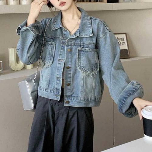 [에이치플러스몰]셔츠 기장 반팔 크롭 봄패션 여성봄 여성 데님 청자켓