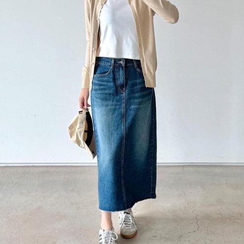 [오너클랜]인기상품 슬릿 청치마 롱 트임 스커트 미디스커트 데님 밑단 [WFJ8PN1_251031]