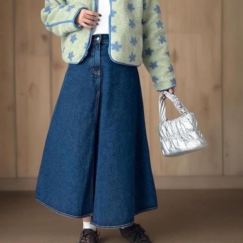 청스커트 복고풍 자수밴딩청치마 데님스커트 롱스커트 F84550