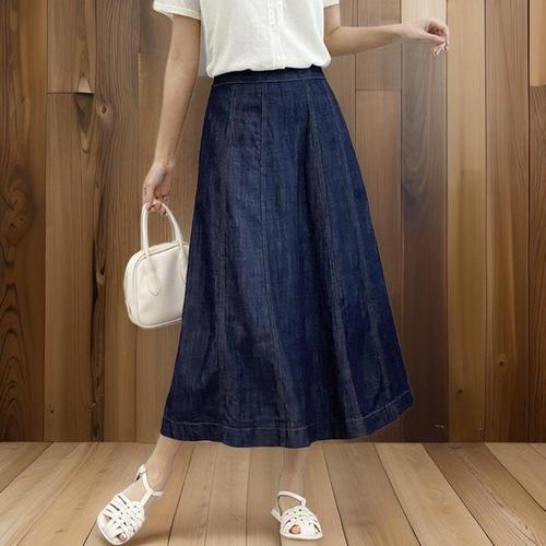 [신상오픈런]여성 심플 클래식 하이웨이스트 스티치 롱 청치마 (33138700)
