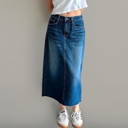 [신상오픈런]여자 빅사이즈 청치마 컷팅 트임 H라인 워싱 롱스커트 (41032690)