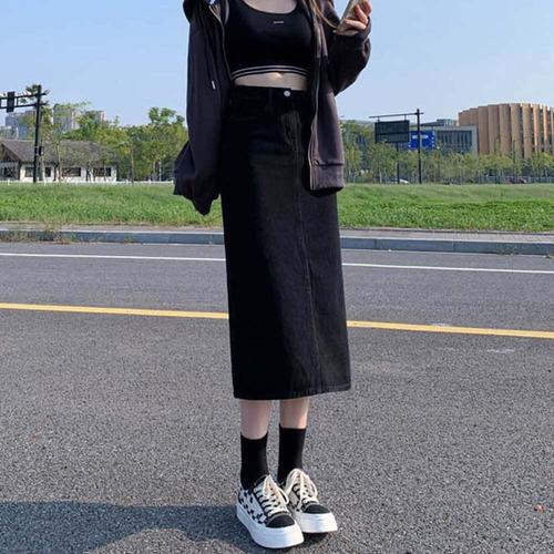 [오너클랜]인기상품 블랙진스커트 블랙진 롱스커트 절개 검정색 하의 청치마 라인 [WFJHNS1_251110]