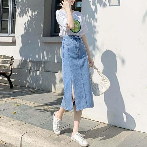 여자 HH92CC91 스커트 치마 롱 옆트임 연청 H라인 청치마 데님