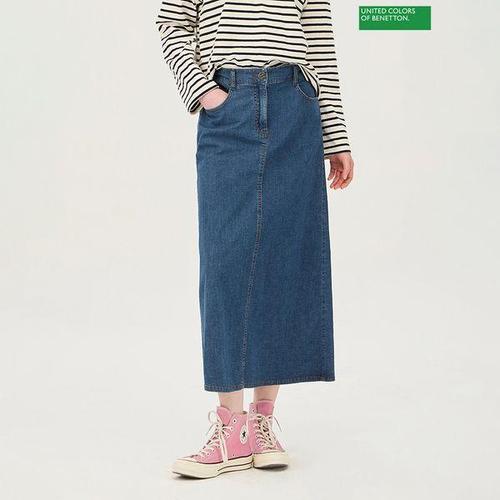 [베네통]뒷밴딩 맞트임 A라인 데님 스커트 BASKA3611