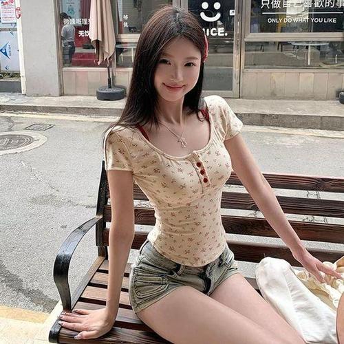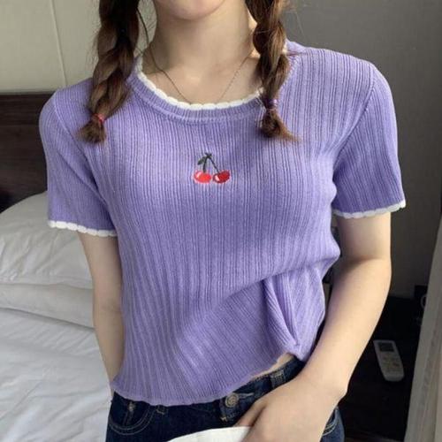 [에이치플러스몰]체리 인기 반크롭 예쁜 여성 감성 티셔츠 여름 자수