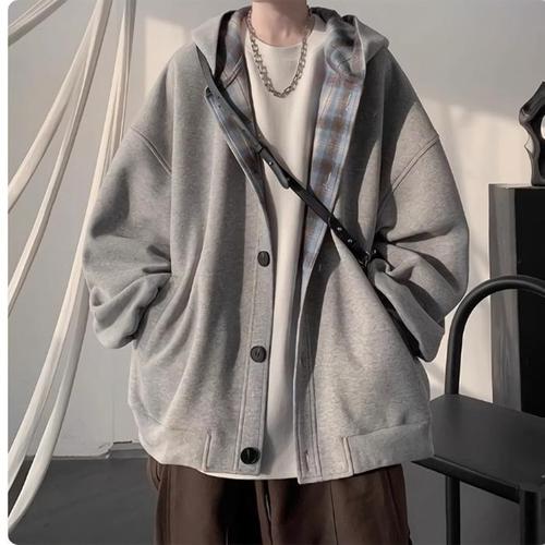 봄가을 카디건 코튼 정장 남자 오버핏 니트 겨울 체크가디건 브이넥 루즈핏