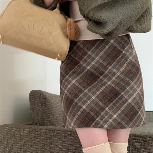 [신상오픈런]여성 키치무드 격자 체크 모직 미니 스커트