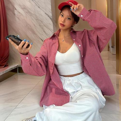 [신상오픈런]체크셔츠 오버핏 스트릿 코튼 박스 긴팔면남방 (31804573)
