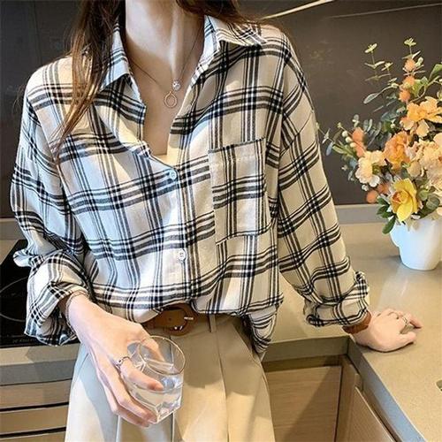 심플 모던 체크셔츠 남방 여성 포켓 LK-S0 WFL8P8D