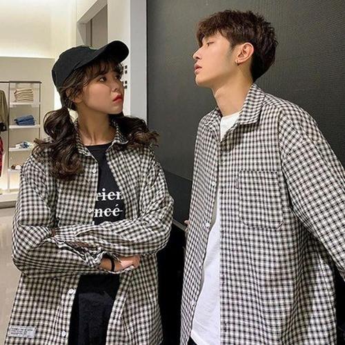 [에이치플러스몰]신상셔츠 정장 남녀공용 솔리드 체크셔츠 남자남방